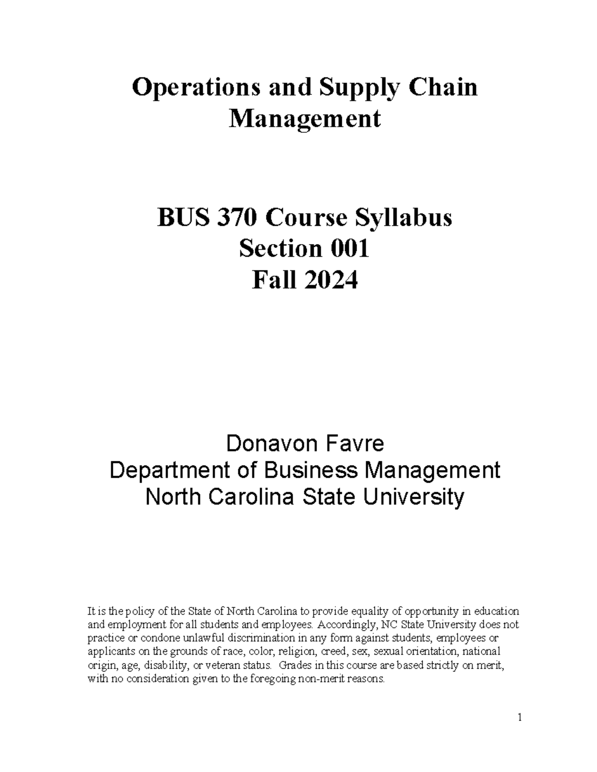 BUS 370 Syllabus Operations and Supply Chain Management BUS 370