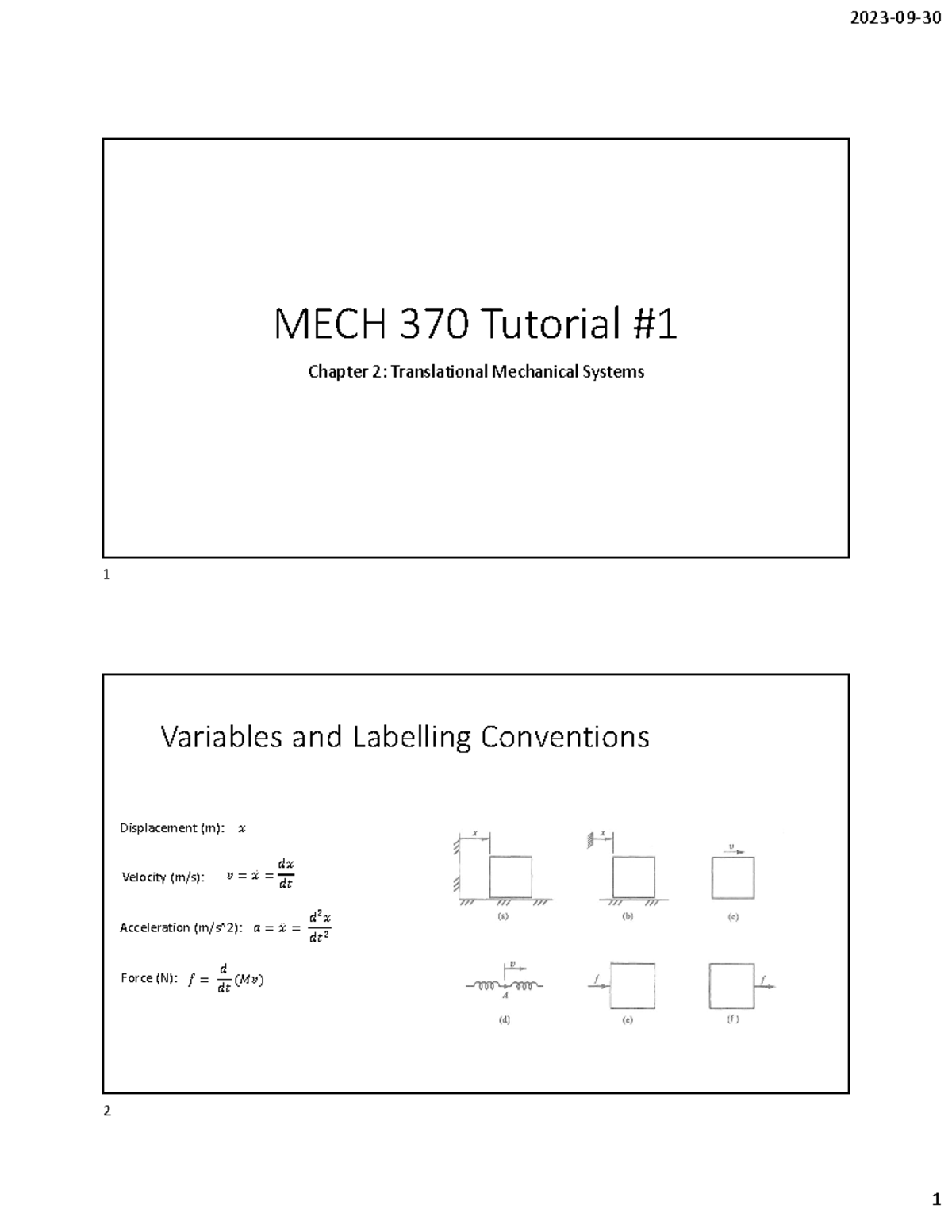 Mech 370 tutorial 1 MECH 370 Tutorial Chapter 2 Translational