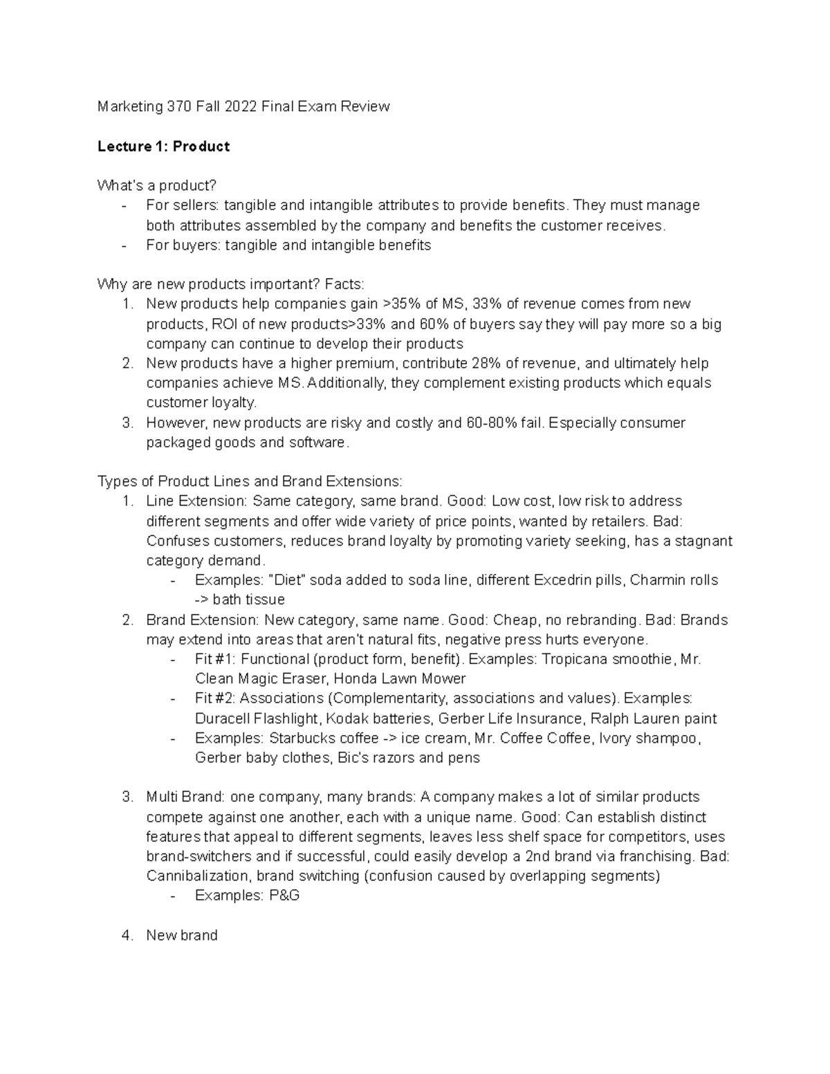 MKT370 Exam 2 Review Marketing 370 Fall 2022 Final Exam Review