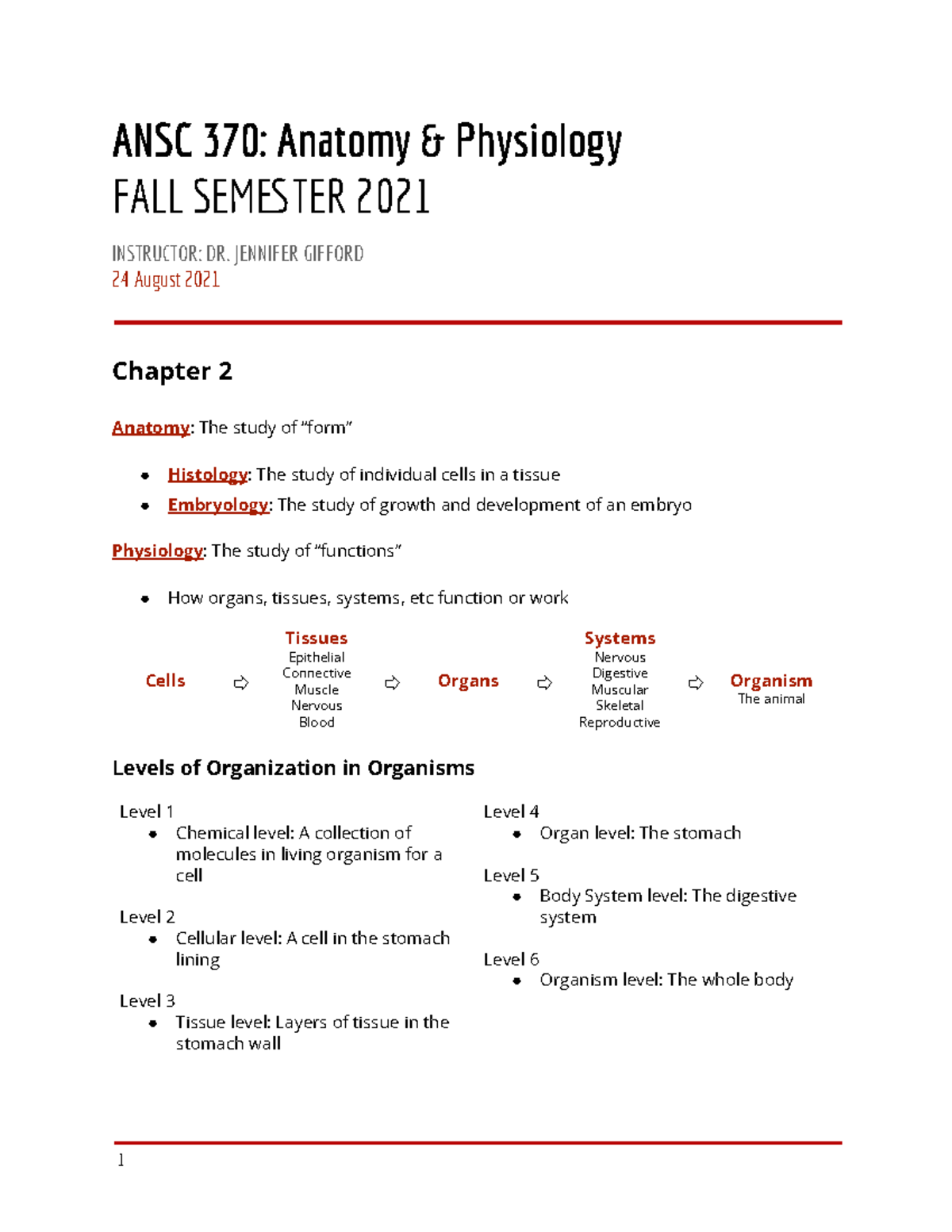 ANSC 370 L1 First unit ANSC 370 Anatomy & Physiology FALL SEMTER