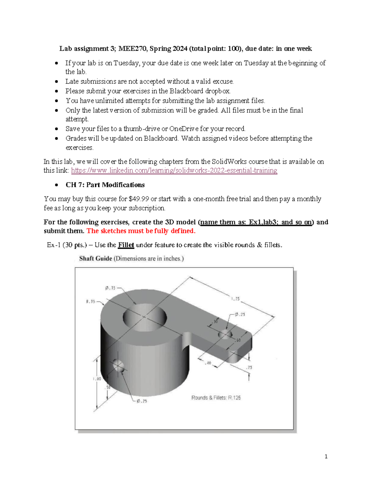 Lab 3 instruction me 370 1 Lab assignment 3 ; MEE270, Spring 20 24