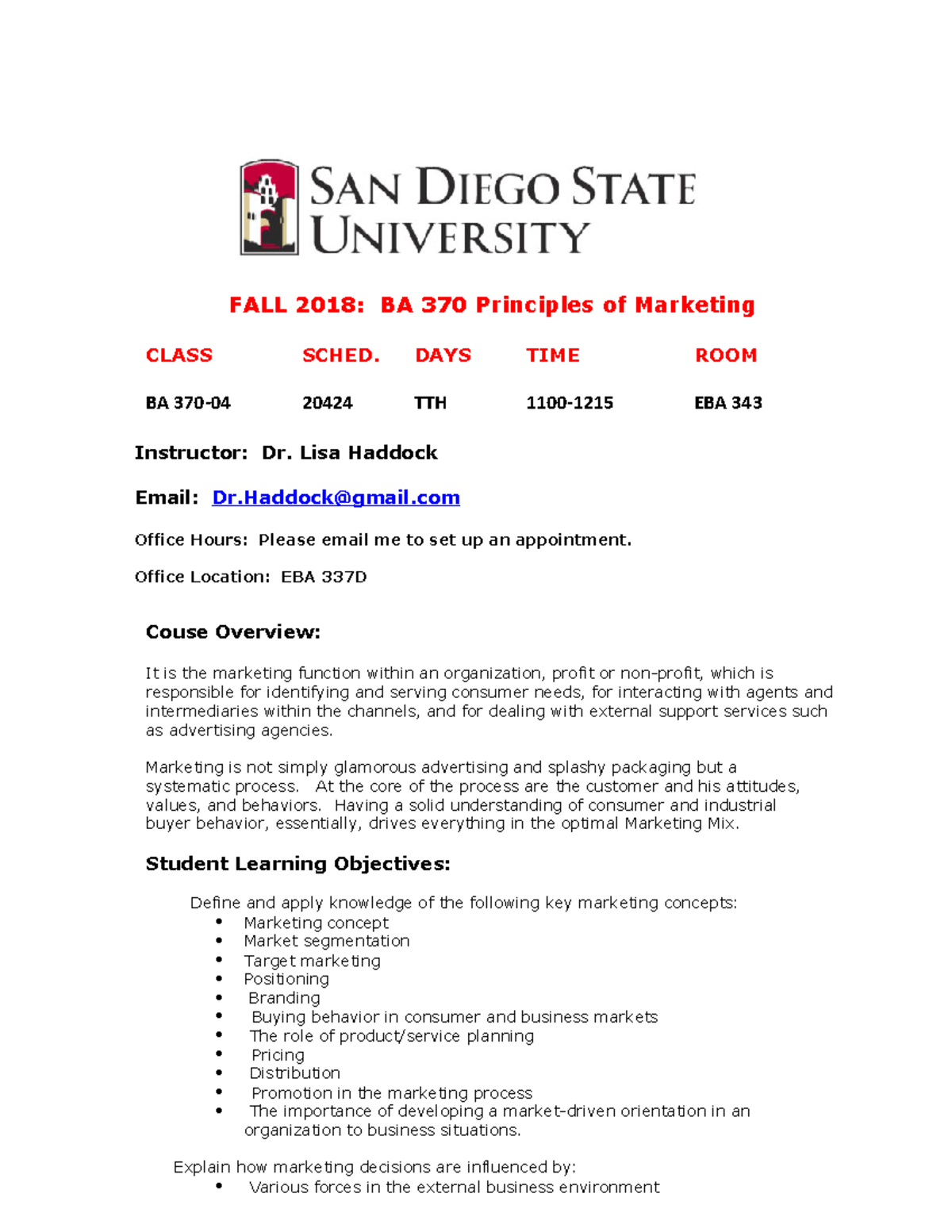 SDSU BA 370 Online Marketing Spring 2022 Course Syllabus