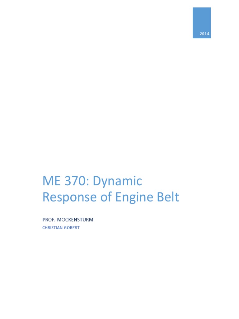 ME 370 Dynamic Response of Engine Belt Prof. Mockensturm PDF