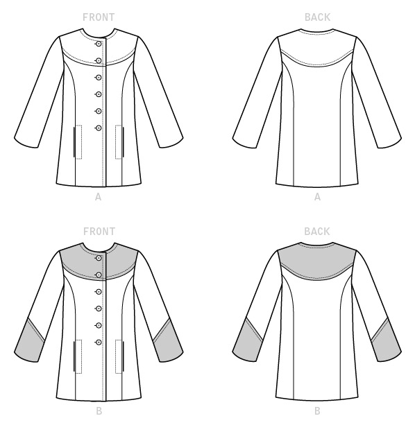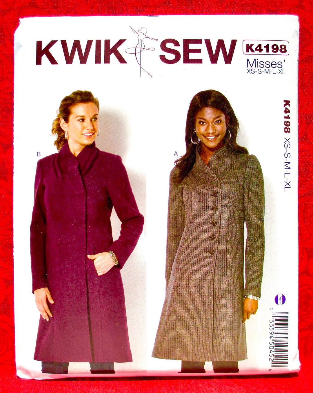 Kwik Sew Sewing Pattern K4198 Swan Neck Fitted Coat, Princess Seams