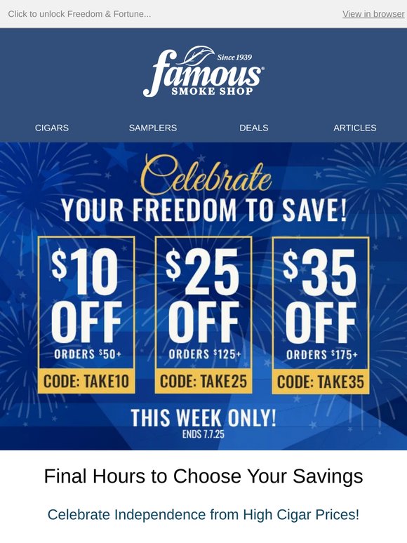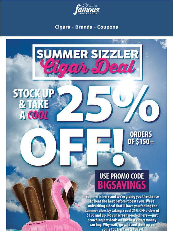 Famous Smoke Shop Sizzling Cigar Deal Savor the Summer with a cool 25