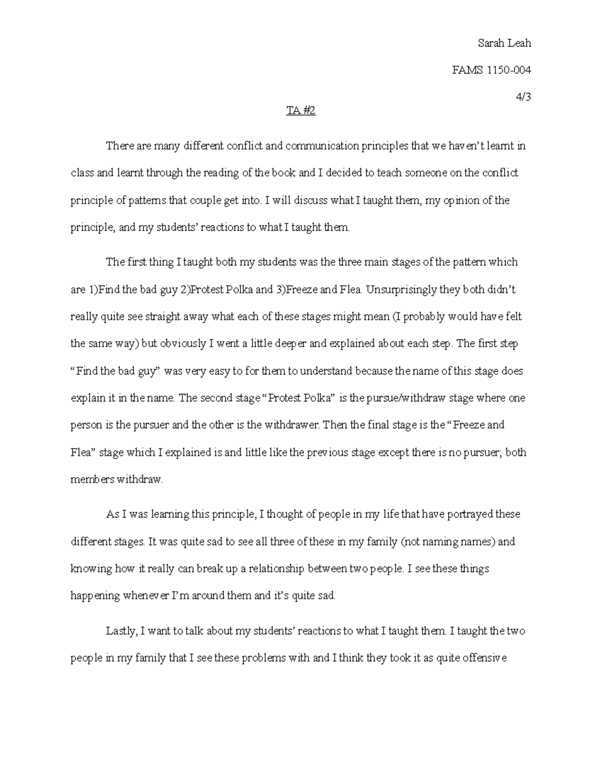 TA 2 TA 2 Sarah Leah FAMS 1150 4/ TA There are many different