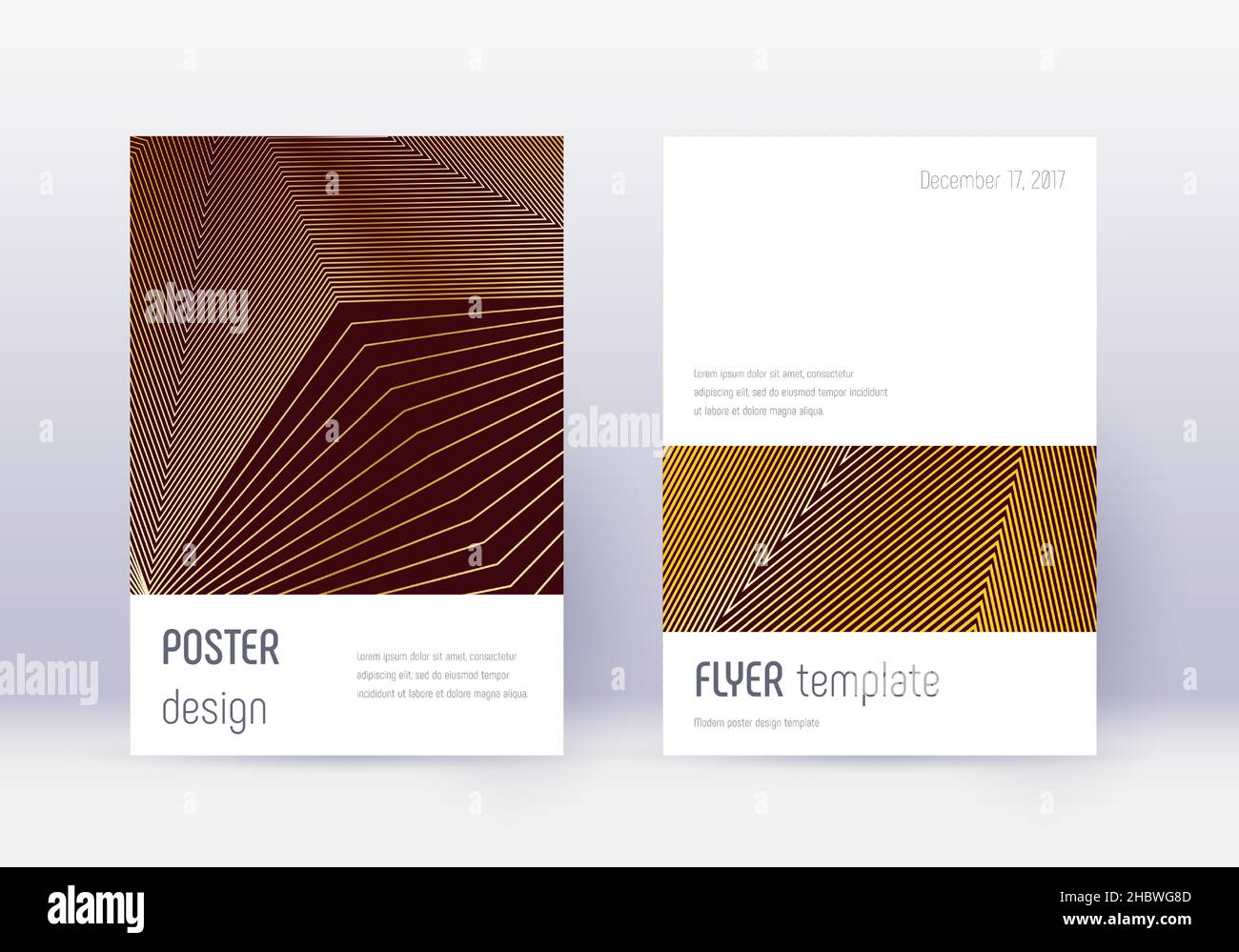 Minimalistic cover design template set. Gold abstract lines on maroon