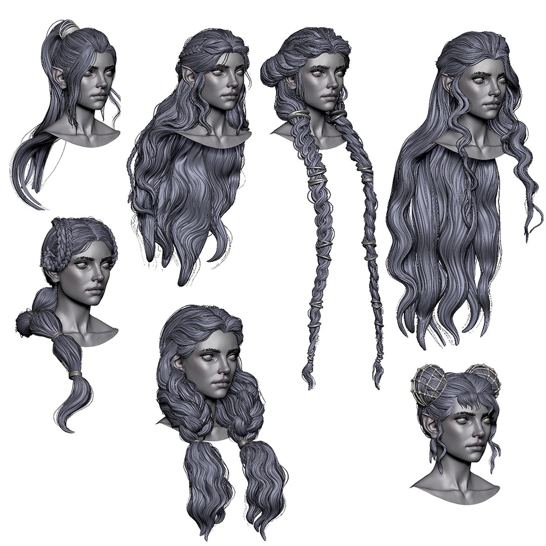 7 Fantasy Female Hairstyles 3D Model TurboSquid 2174090