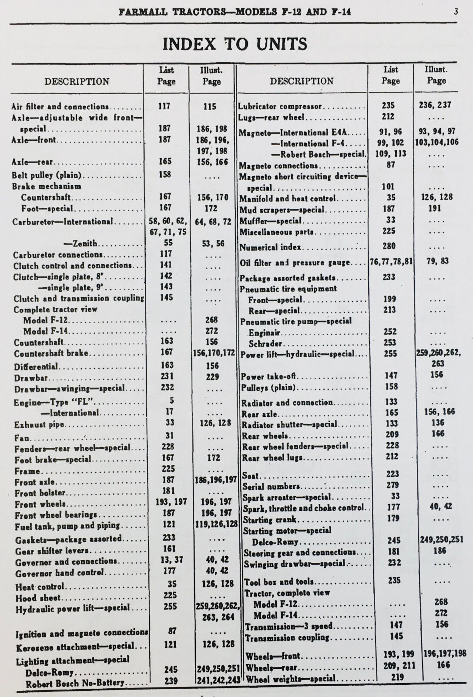 Mccormick Deering Farmall F12 F14 Tractor Parts Manual Catalog