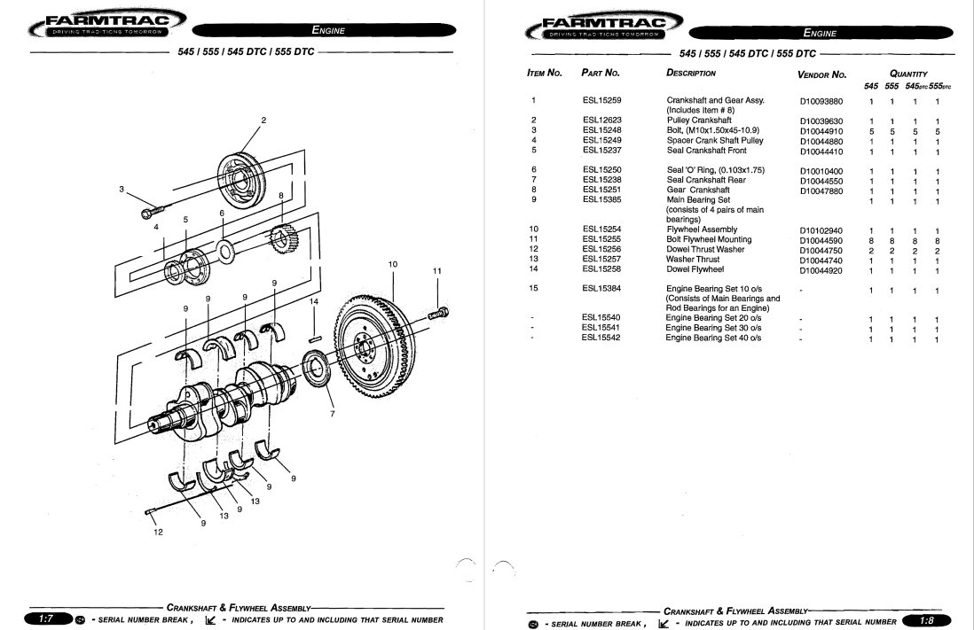 Farmtrac 545 , 555 Tractor Series Parts Catalogue