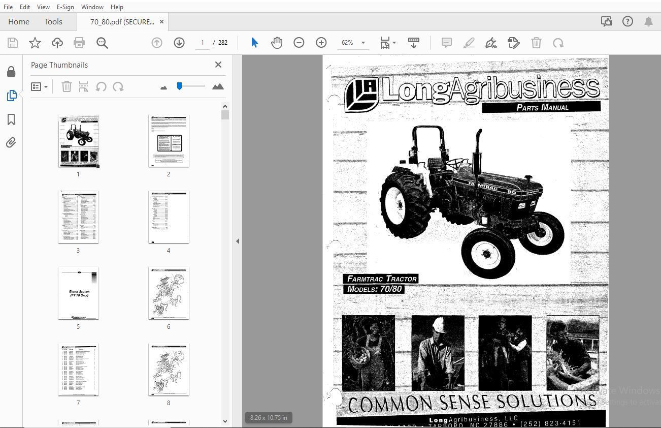 Longagribusiness Farmtrac Tractor 70 & 80 Parts Manual 282 Pages