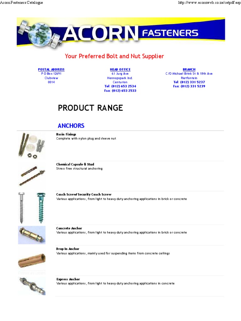 Acorn CatalogueFastener PDF Screw Manufactured Goods