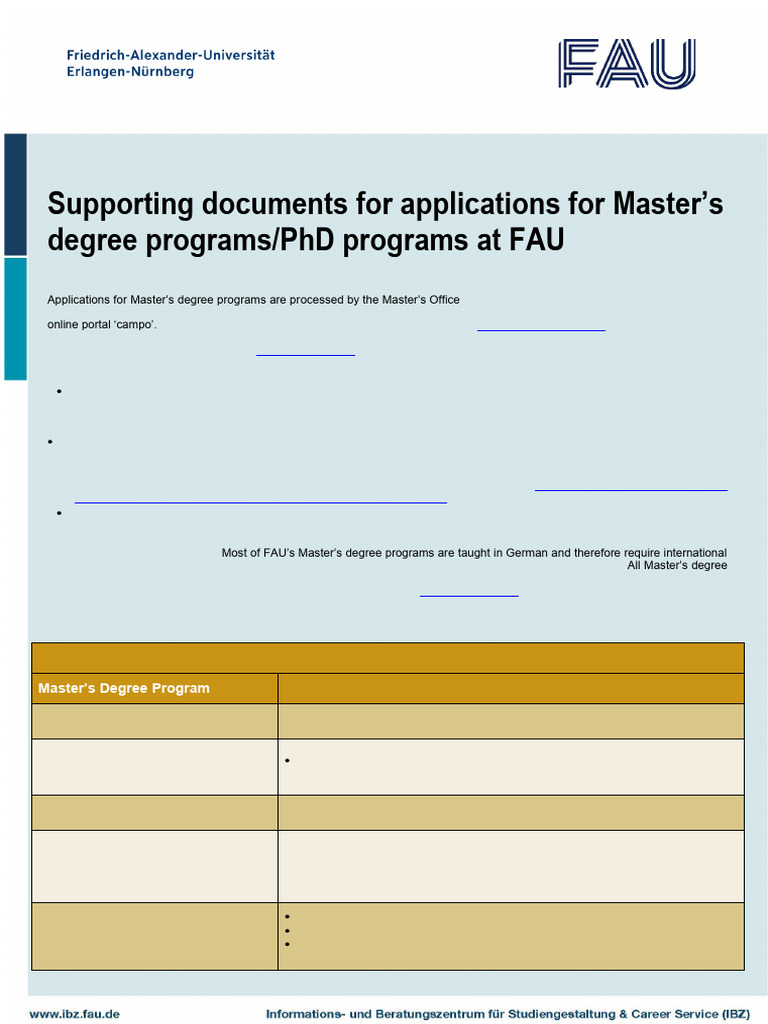 FAU Supporting Documents For Applications For Masters Degree Programmes