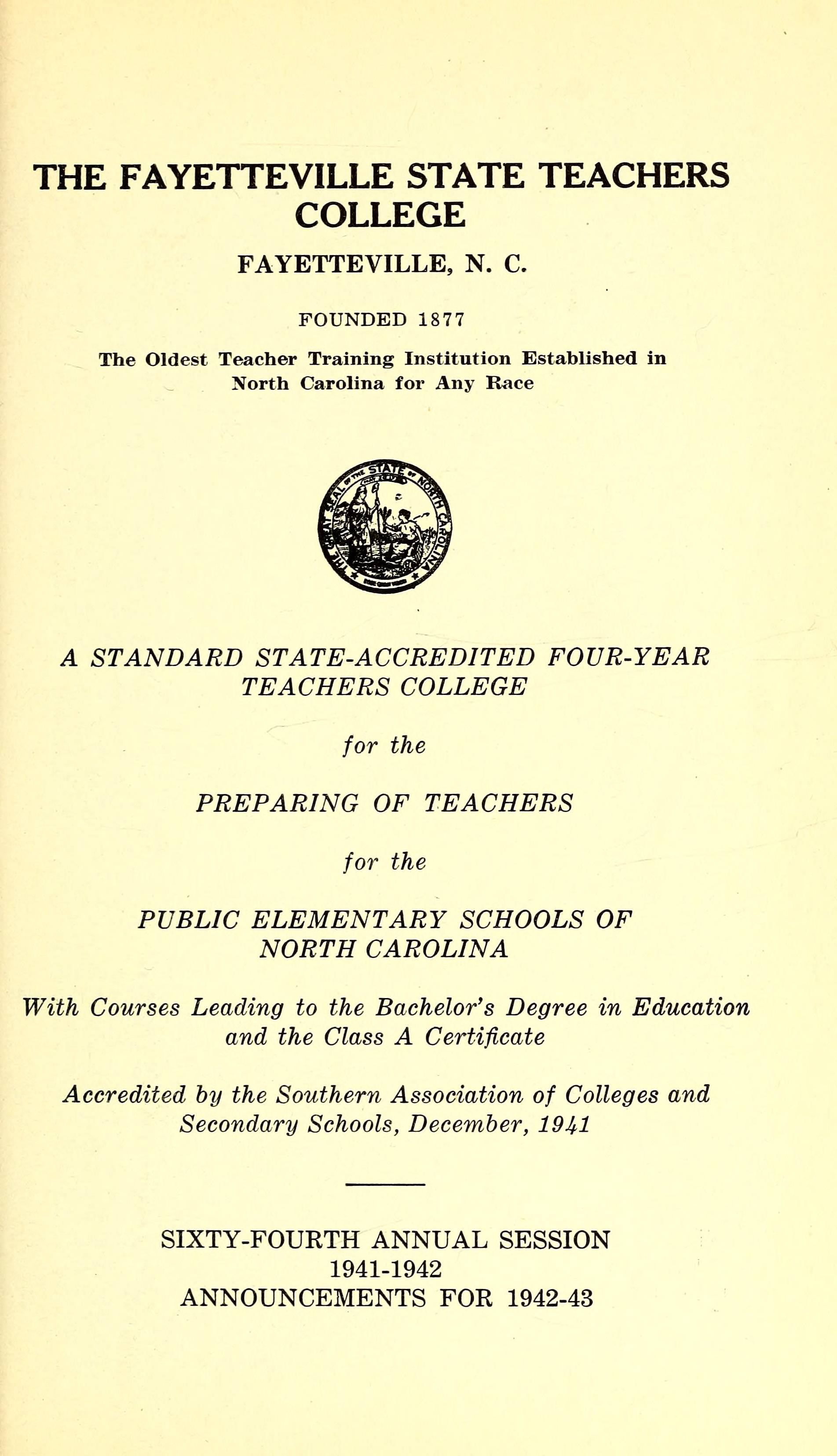 Fayetteville State Teachers College Catalog [19411942]
