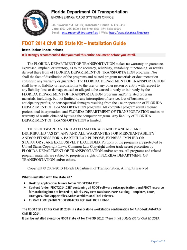 FDOT 2014 Civil 3D State Kit Installation Guide Florida Department