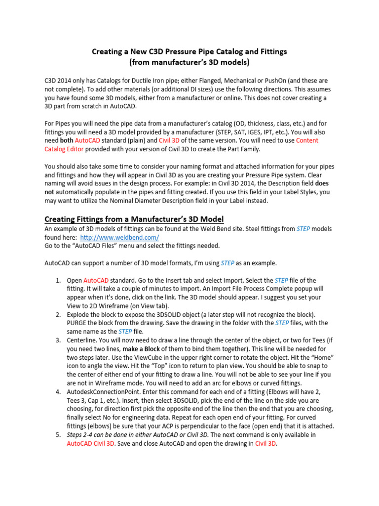 Creating A New Pipe Catalog and Fittings For C3D Pressure Pipes PDF