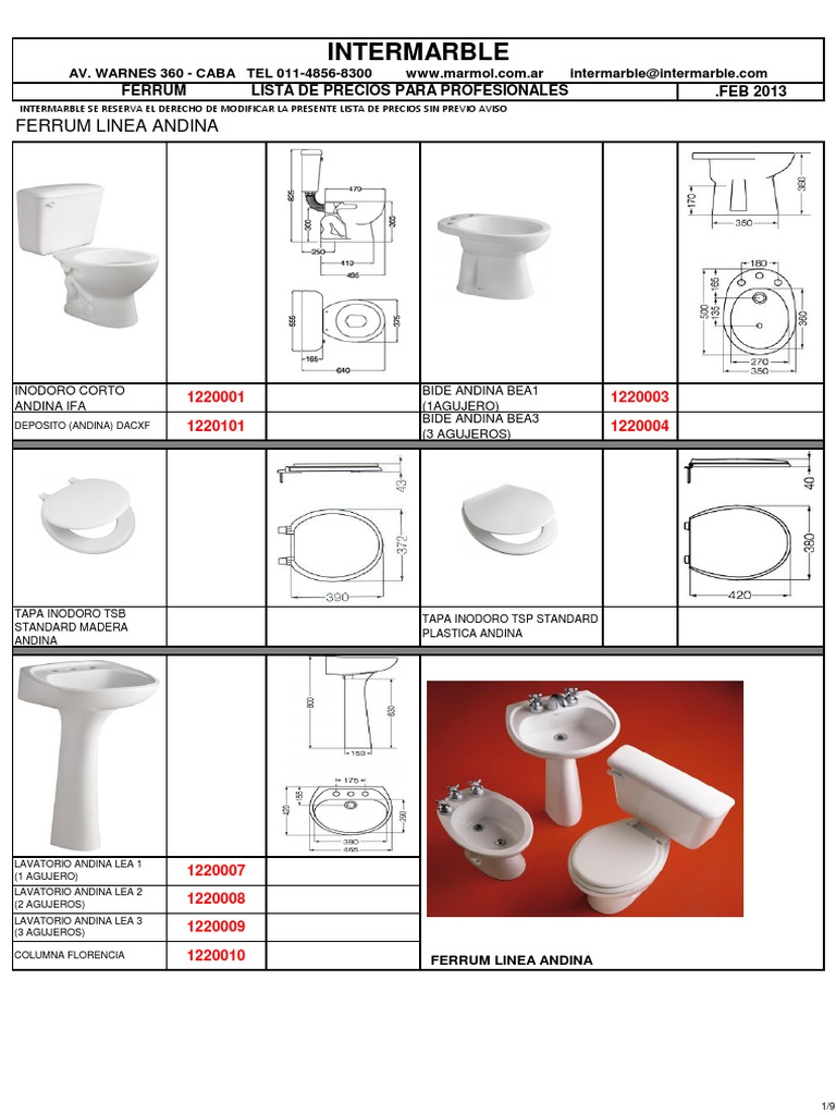 Sanitarios, Bañeras, Vanitorys, Espejos y otros ferrum