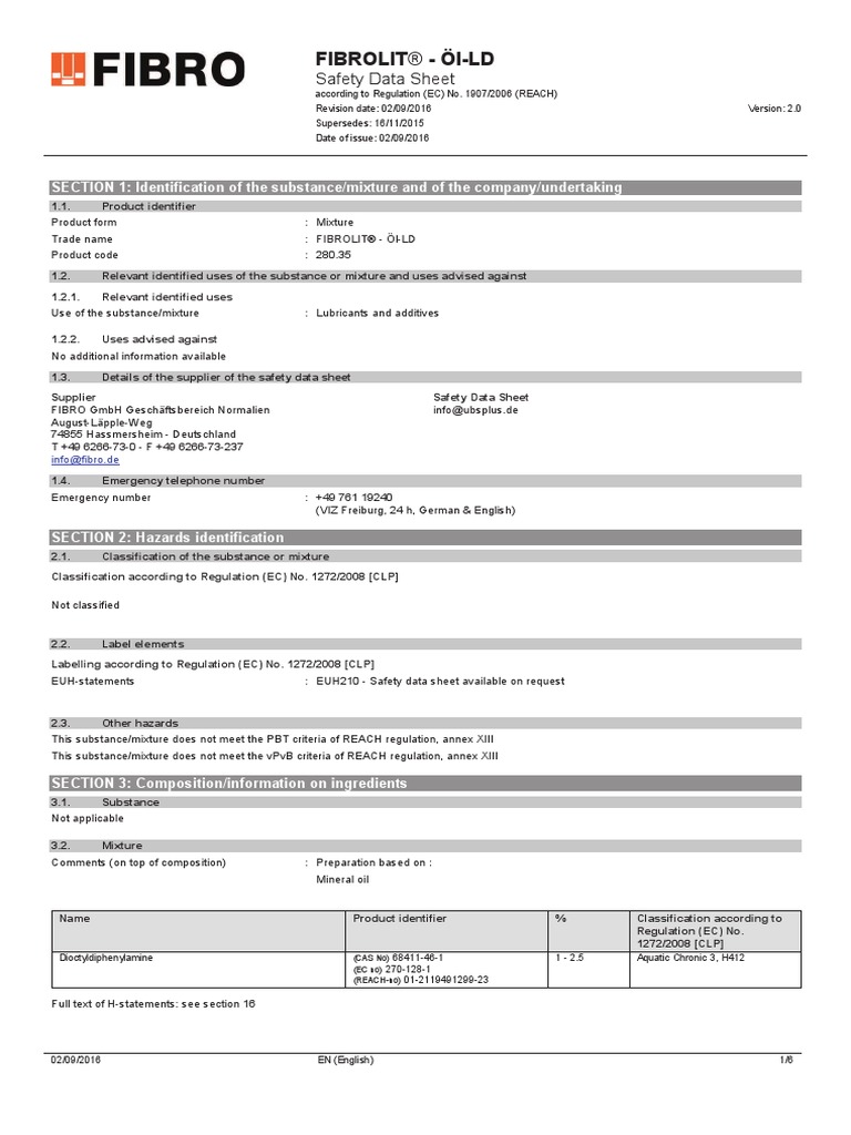 Fibrolit® ÖlLd Safety Data Sheet PDF Dangerous Goods Prevention