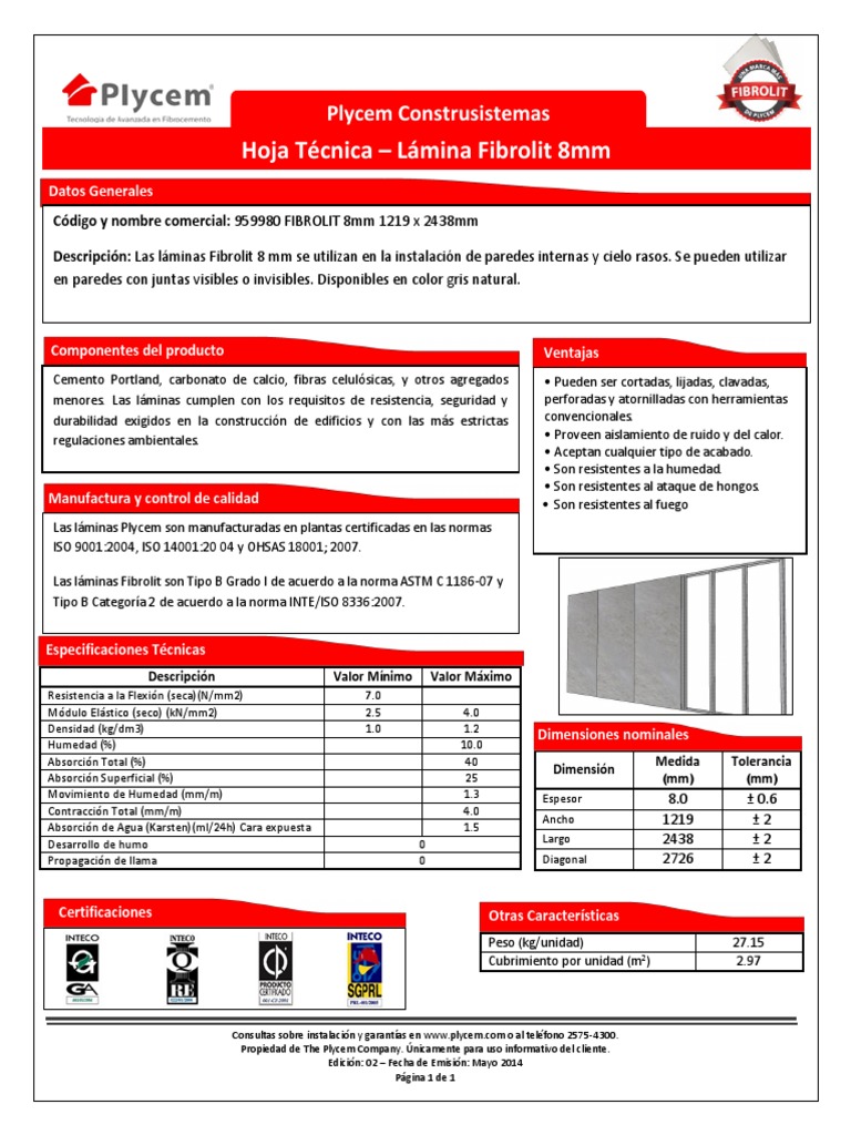 Ficha Tecnica Fibrolit Ultra 10.05.22 PDF Materiales