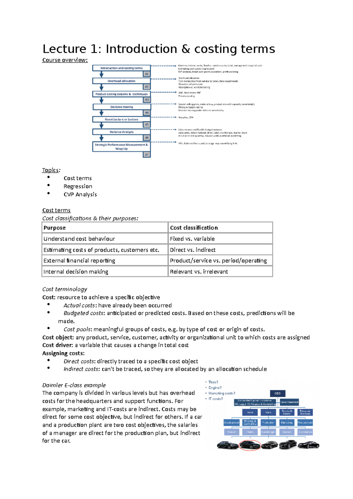 FIDM lectures Lecture 1 Introduction & costing terms Course overview