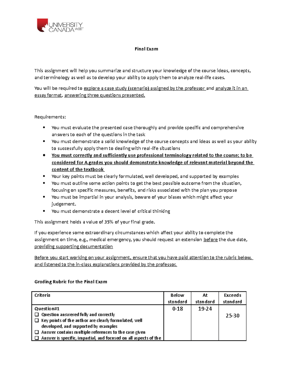 Final Exam Summer 2023 Final Exam This assignment will help you