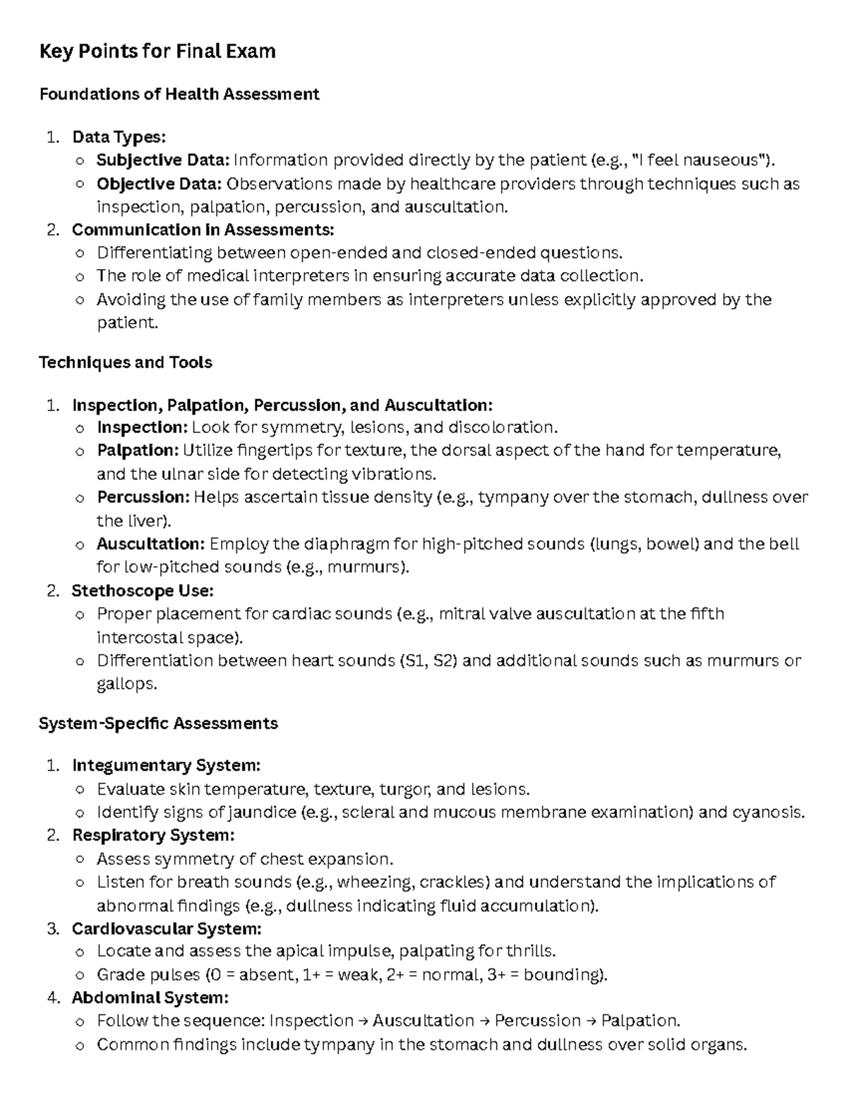 Final Exam Key Points Key Points for Final Exam Foundations of Health