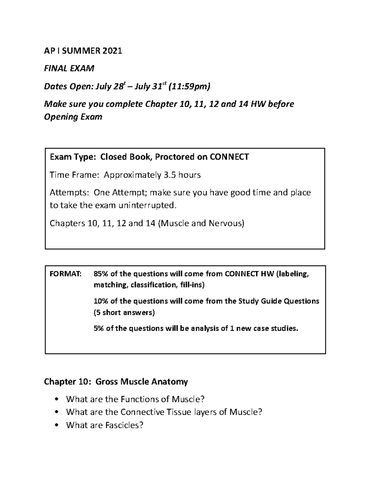 Final Exam Study Guide Summer API 2021 AP I SUMMER 2021 FINAL EXAM