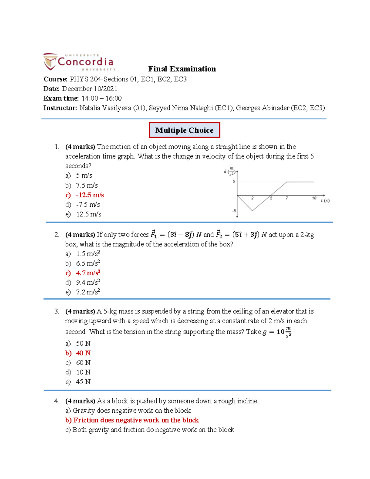 F21PHYS 204Final Exam Solutions Final Examination Course PHYS 20 4