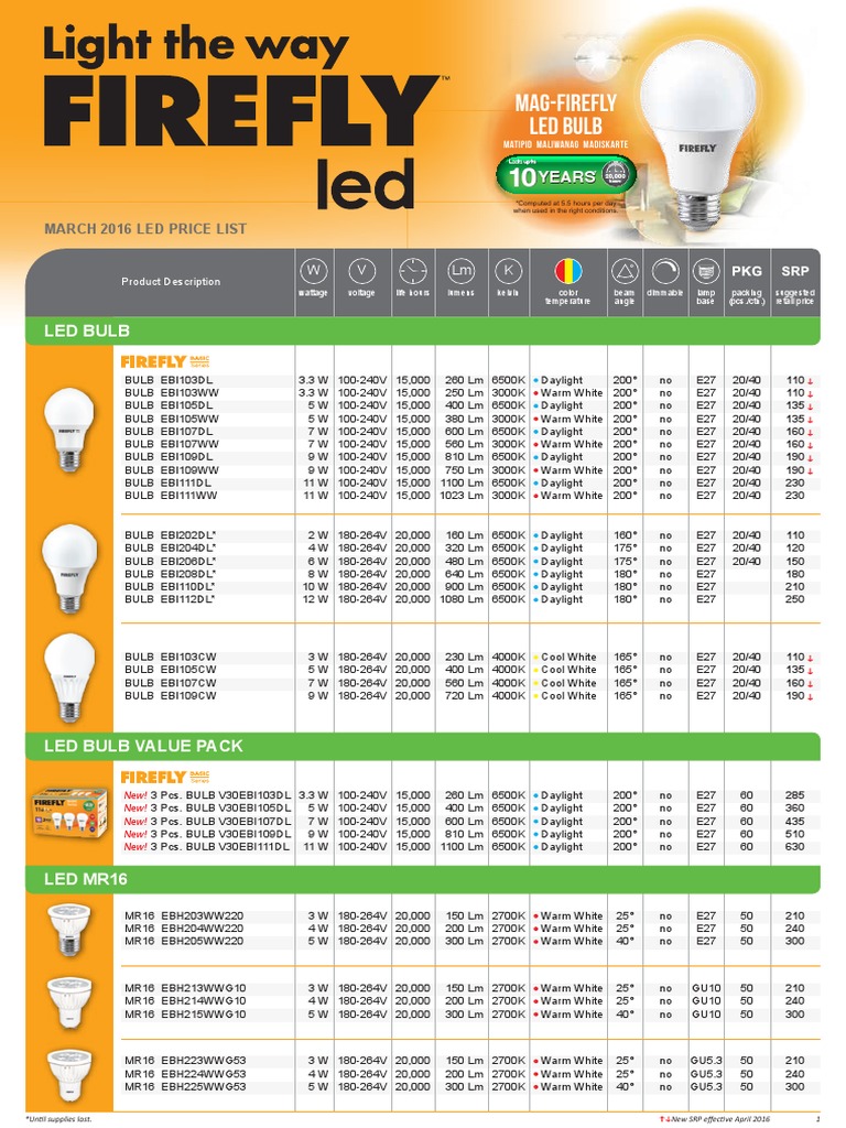 Firefly LED Price List March 2016 Power Supply Spectrum