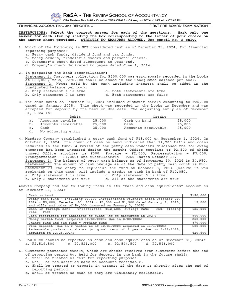 ReSA B48 FAR First PB Exam Questions, Answers & Solutions PDF
