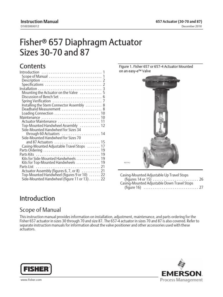 Fisher R 657 Diaphragm Actuator Sizes 30 70 and 87 Scope of Manual