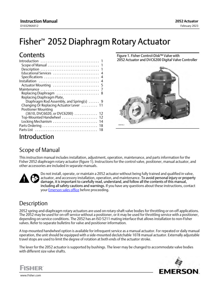 Fisher 2052 Diaphragm Rotary Actuator User Manual PDF Valve Screw