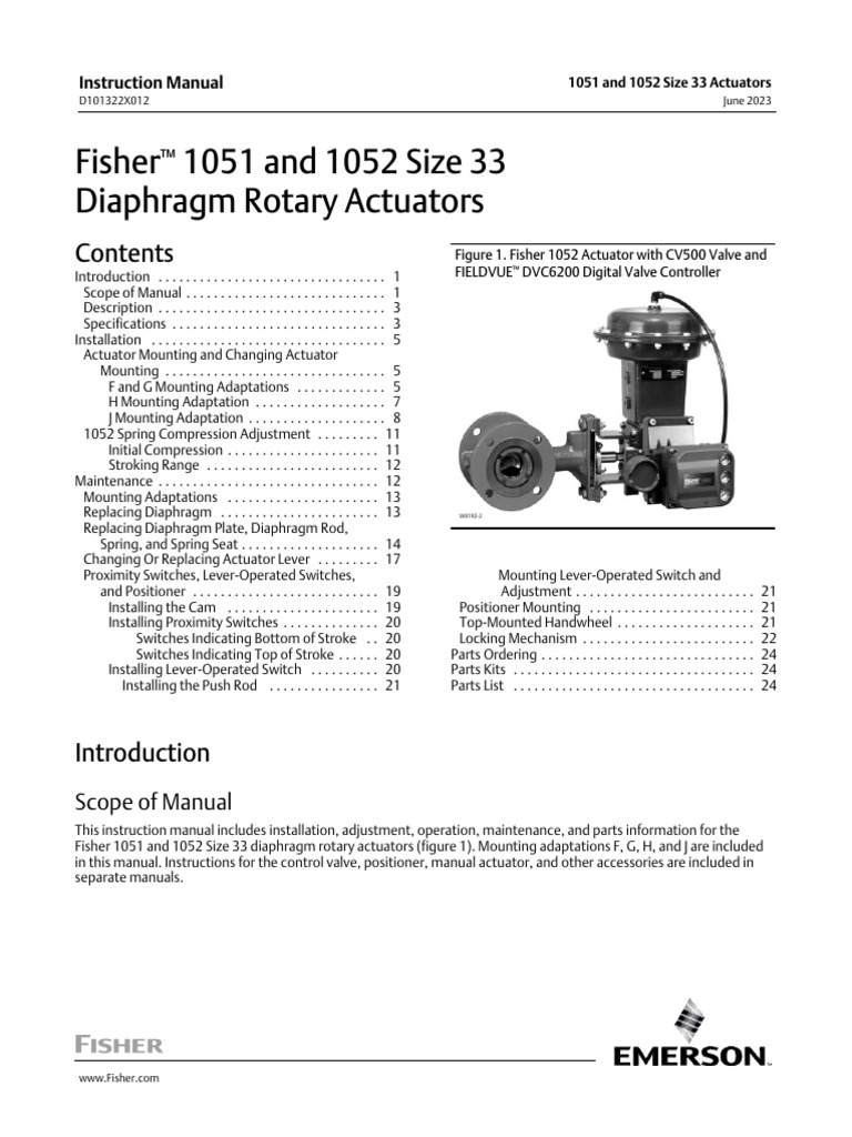 Instruction Manual Fisher 1051 1052 Size 33 Diaphragm Rotary Actuators
