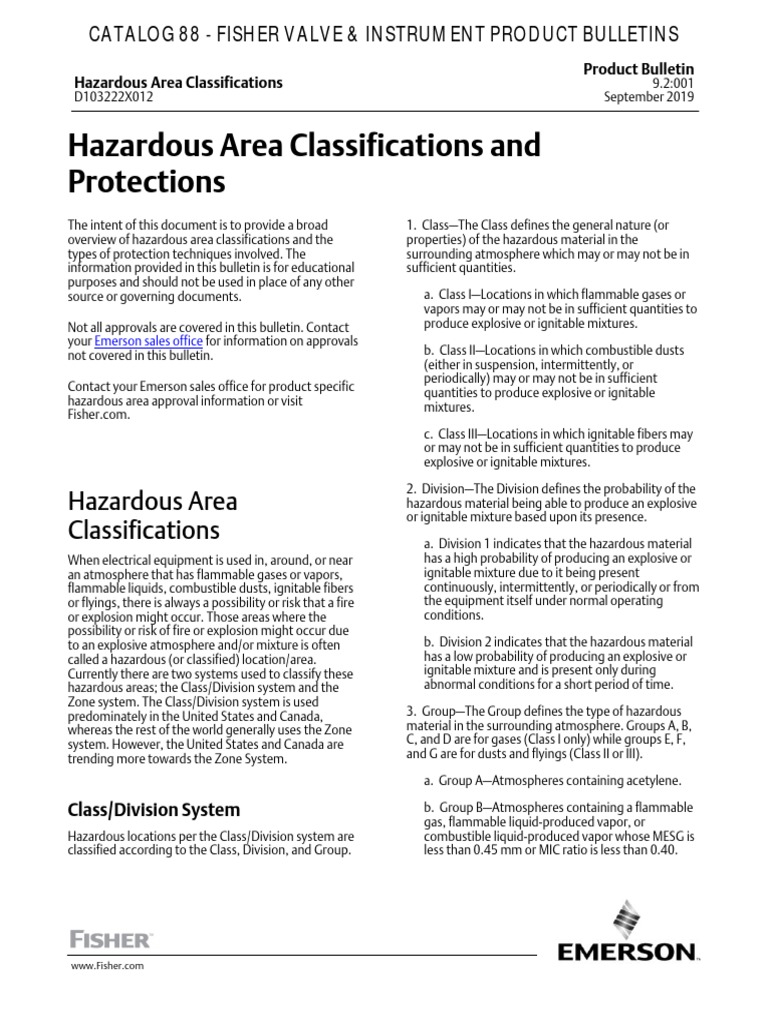 Fisher CATALOG 88 Hazardous Area Classifications Product Bulletins