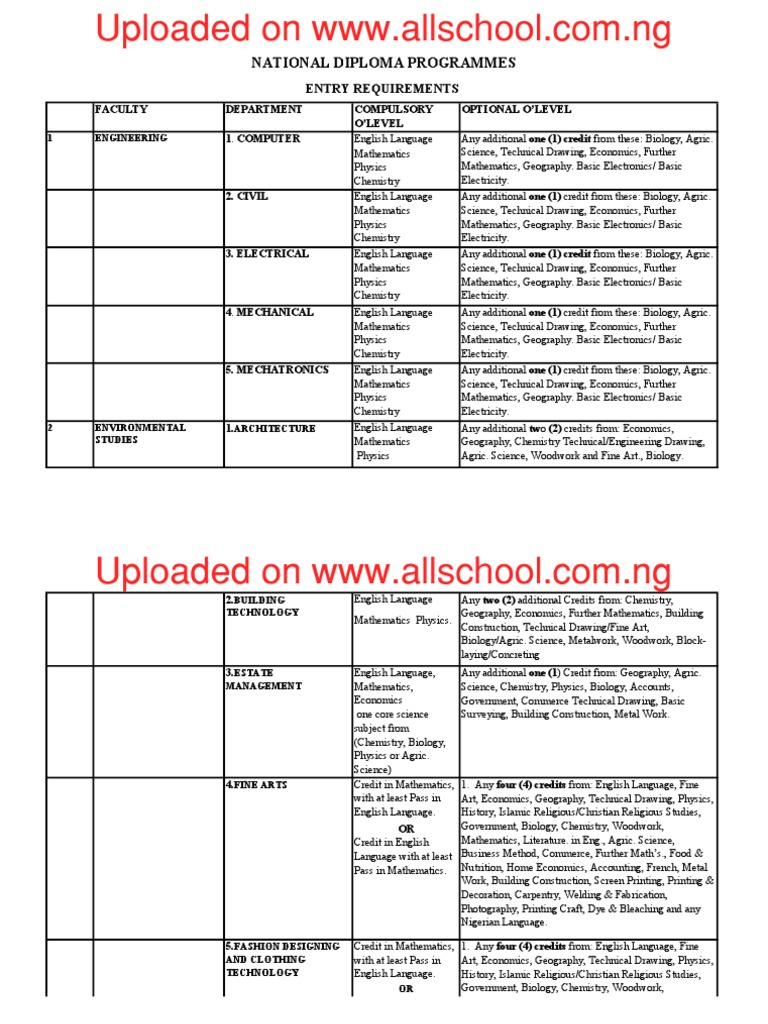 Ibadan Poly Courses and Requirements PDF Science Physics