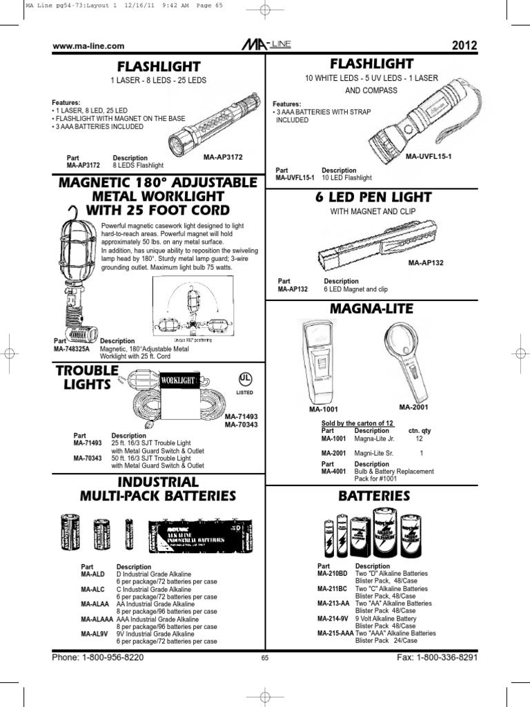 A Catalog Showcasing a Variety of Flashlights, Work Lights, Trouble