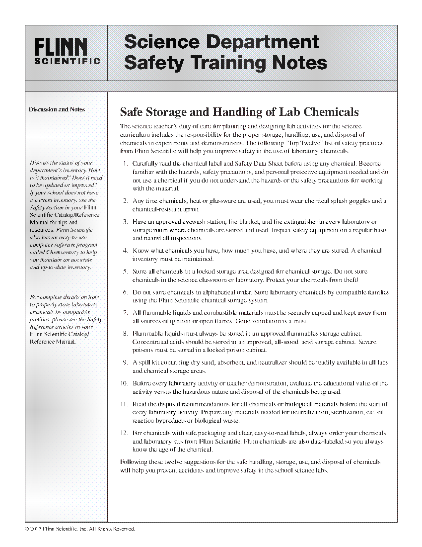 Safe Storage and Handling of Lab Chemicals Flinn Scientific