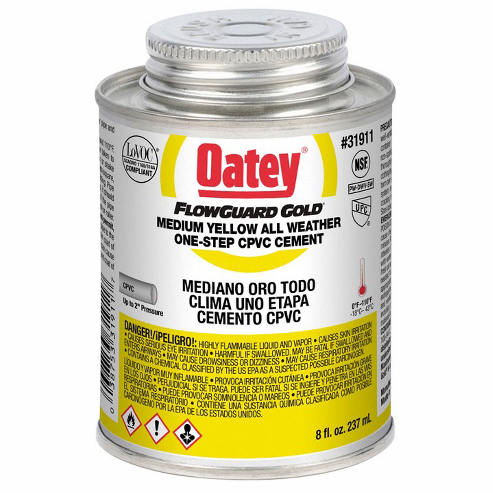 OATEY, Flowguard Gold, 8 fl oz, Pipe Cement 29FH9231911 Grainger