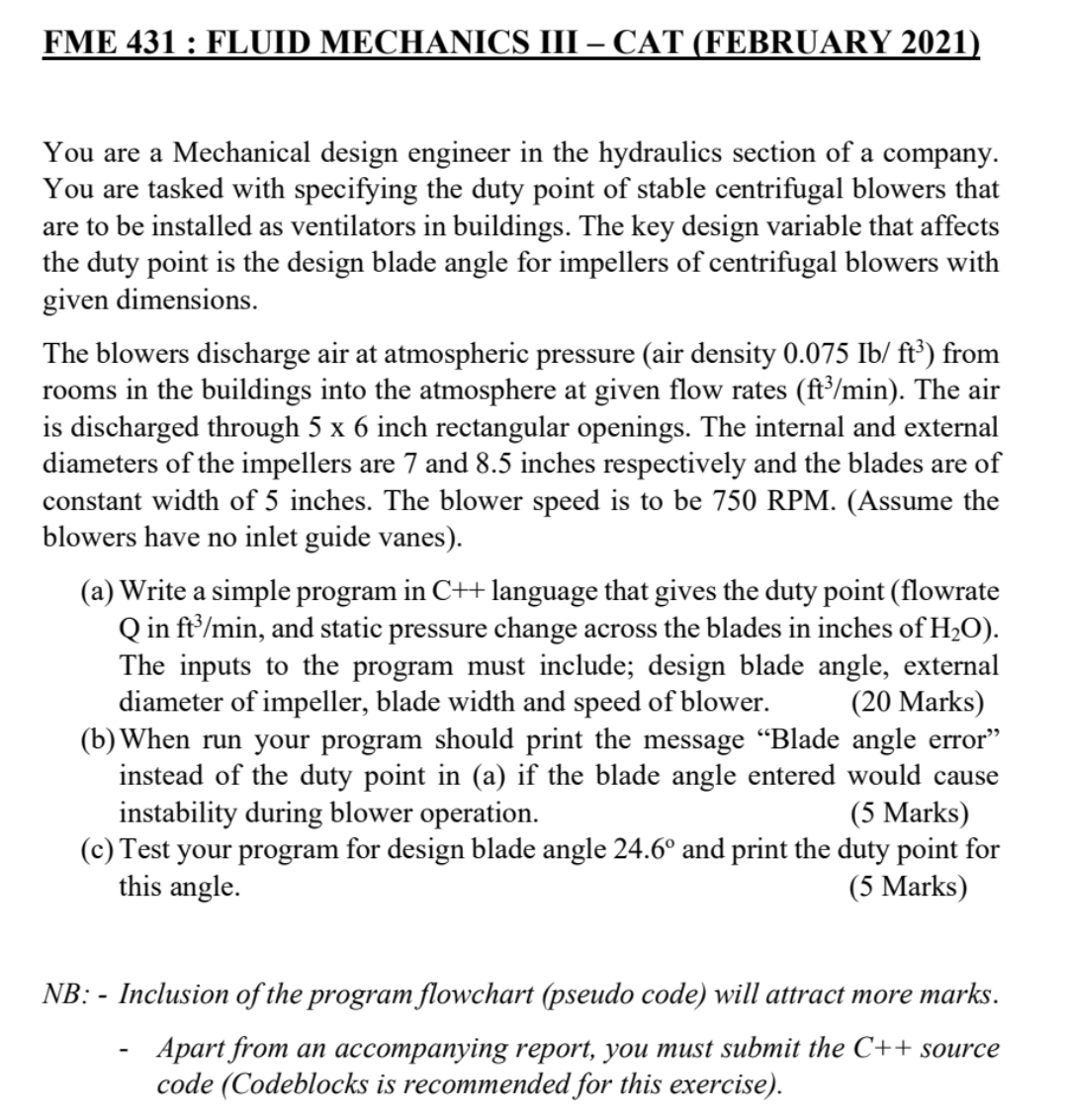 FME 431 FLUID MECHANICS III CAT (FEBRUARY 2021)
