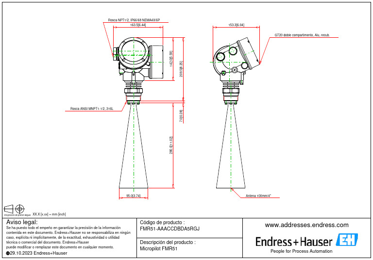 FMR51 AAACCDBDA5RGJ Endress+HauserConsultAG 2DDrawing 10292023 PDF