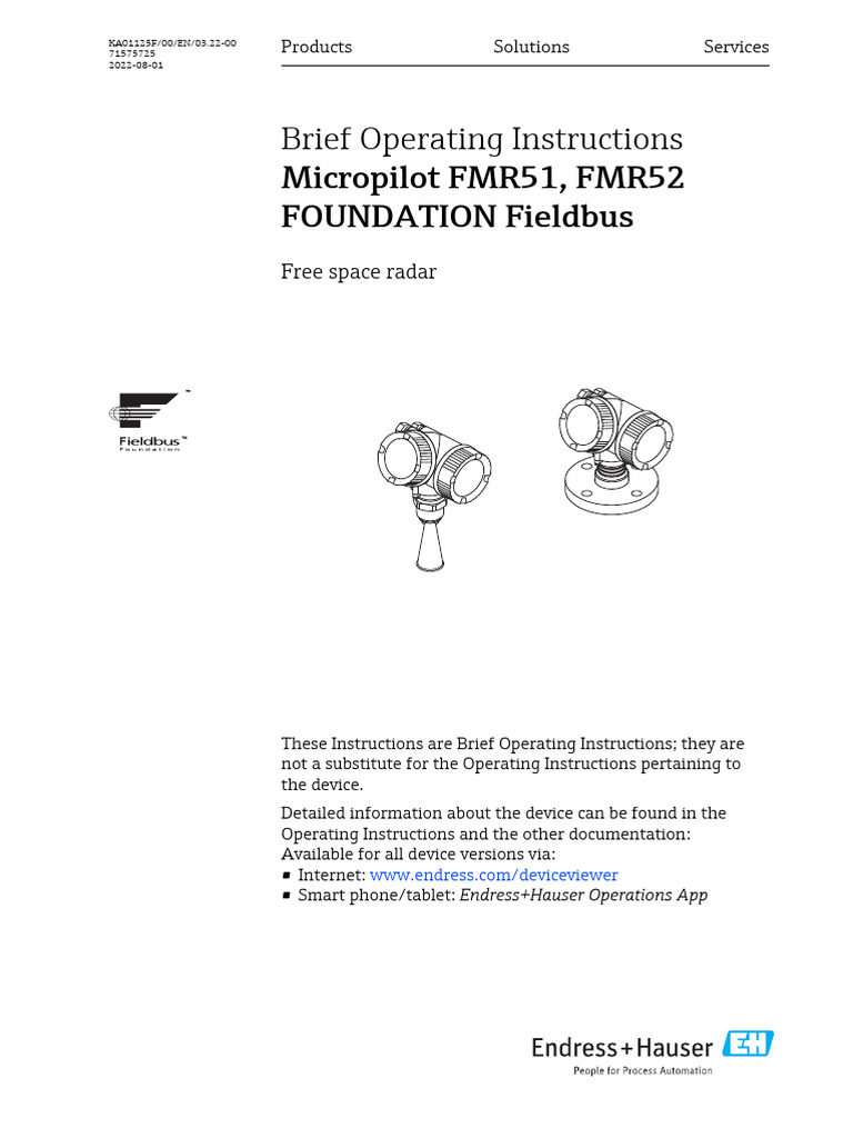 Foundation Fieldbus Micropilot fmr51 Brief Operating Instructions