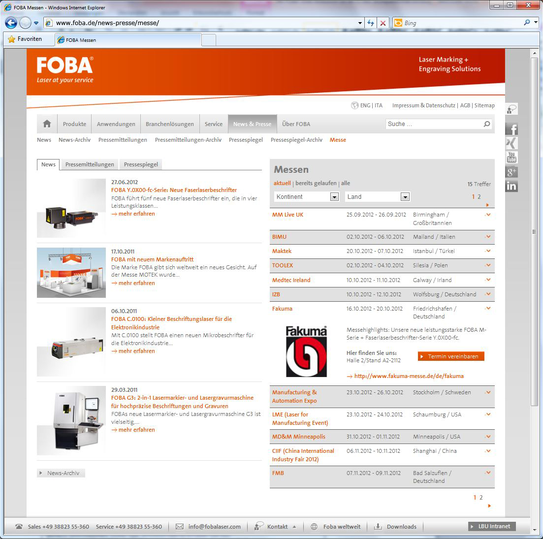 FOBA geht mit neuer Website online, FOBA Laser Marking + Engraving
