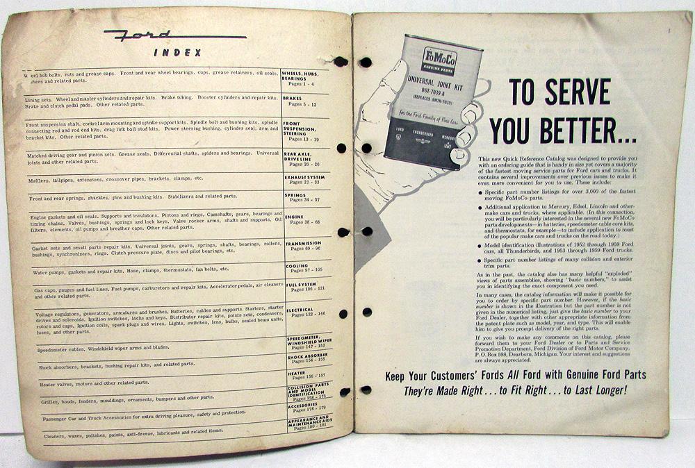 Find 19491959 FORD CAR PARTS CATALOG ORIGINAL FOMOCO TEXT BOOK RARE