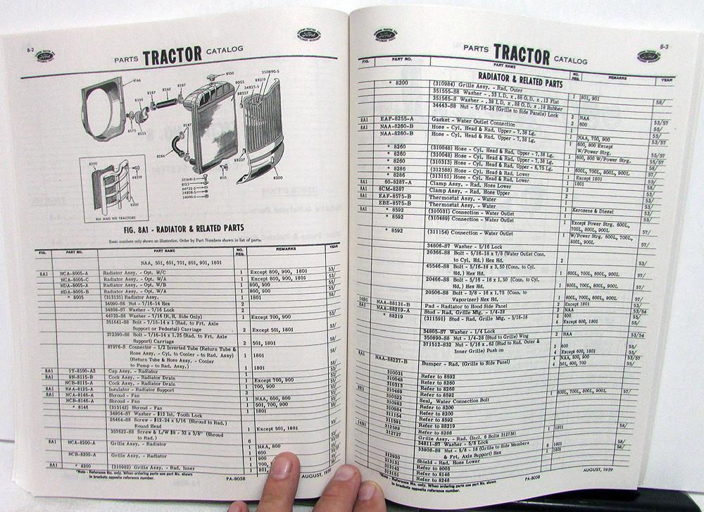 Ford Tractor Master Parts Catalog Models 800, 900, 1801 19531959 PA8058