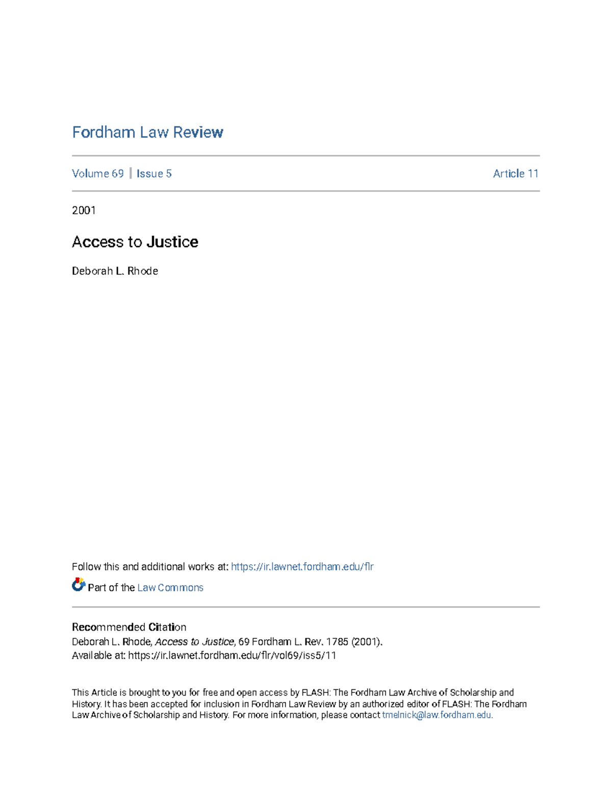 Access to Justice Fordham Law ReviewFordham Law Review Volume 69