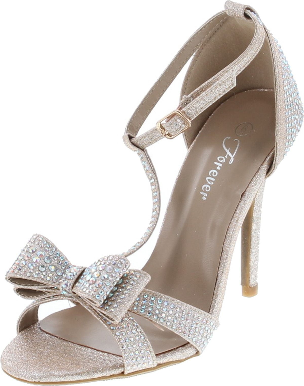 Forever Link Alina64 Rhinestone Glitter TStrap Bow Detail Formal Heel