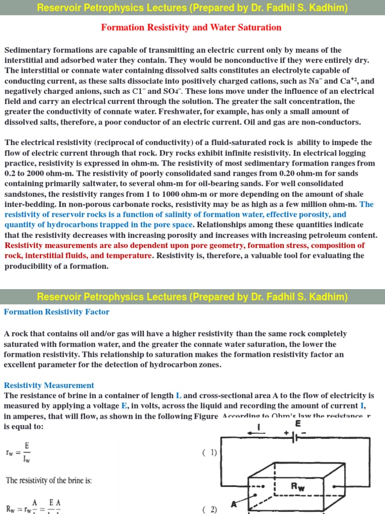 Formation Resistivity and Water Saturation PDF