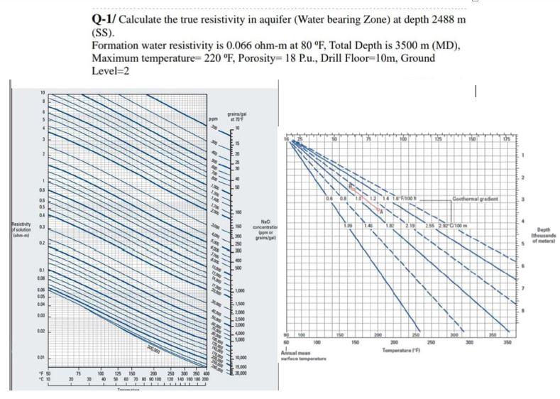 Q1/ Calculate the true resistivity in aquifer (Water