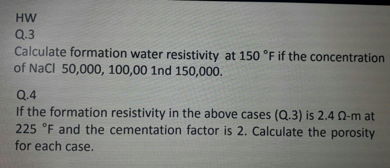 HW Q.3 Calculate formation water resistivity at 150