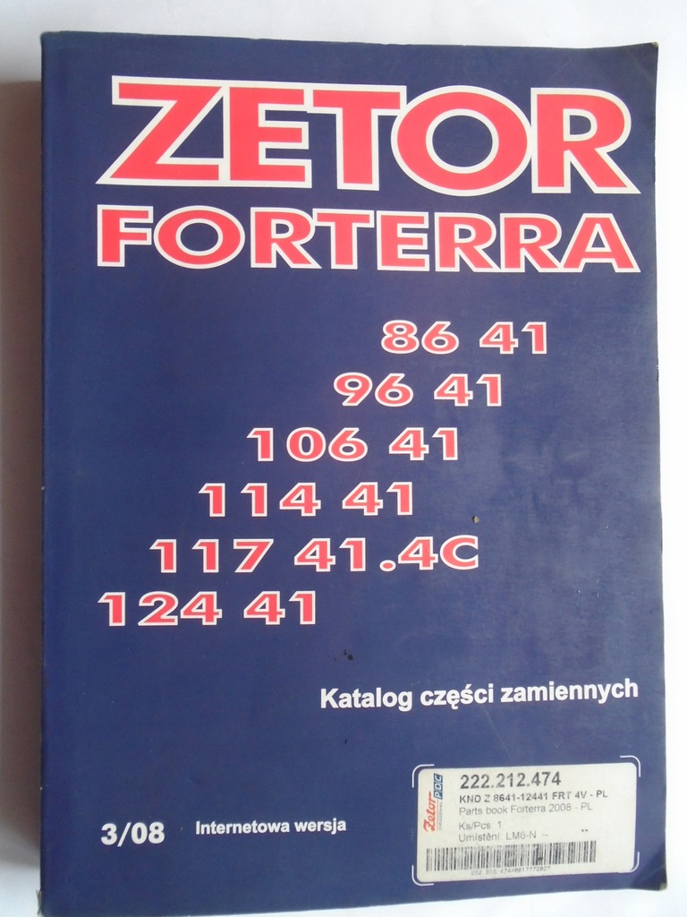 ZETOR FORTERRA KATALOG CZĘŚCI ZAMIENNYCH 9018326267 oficjalne